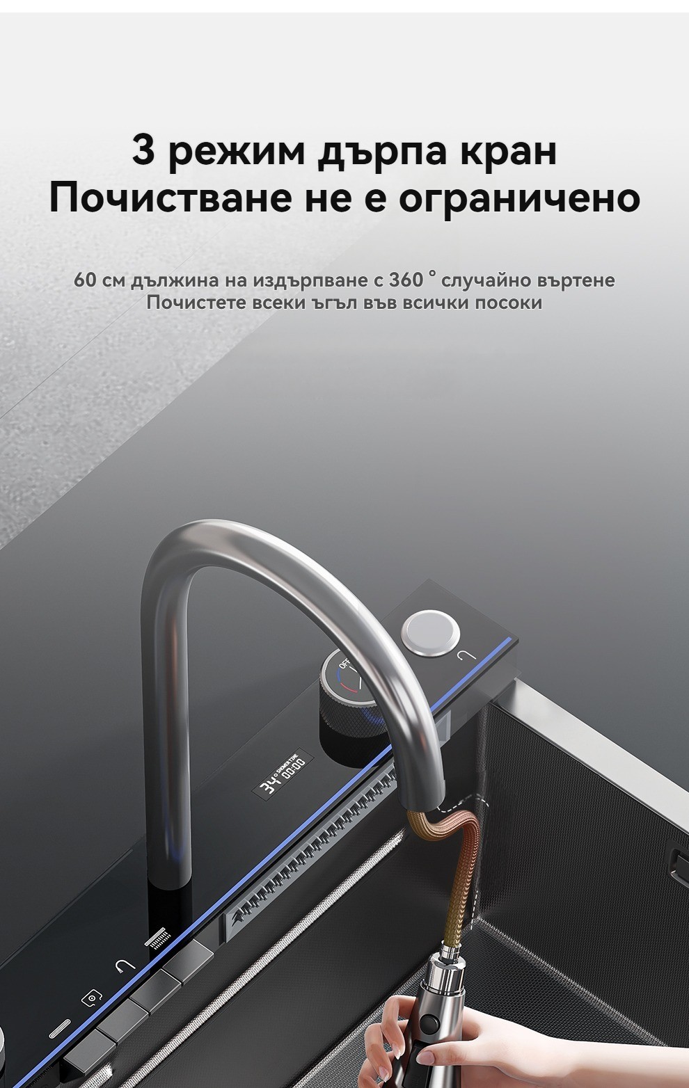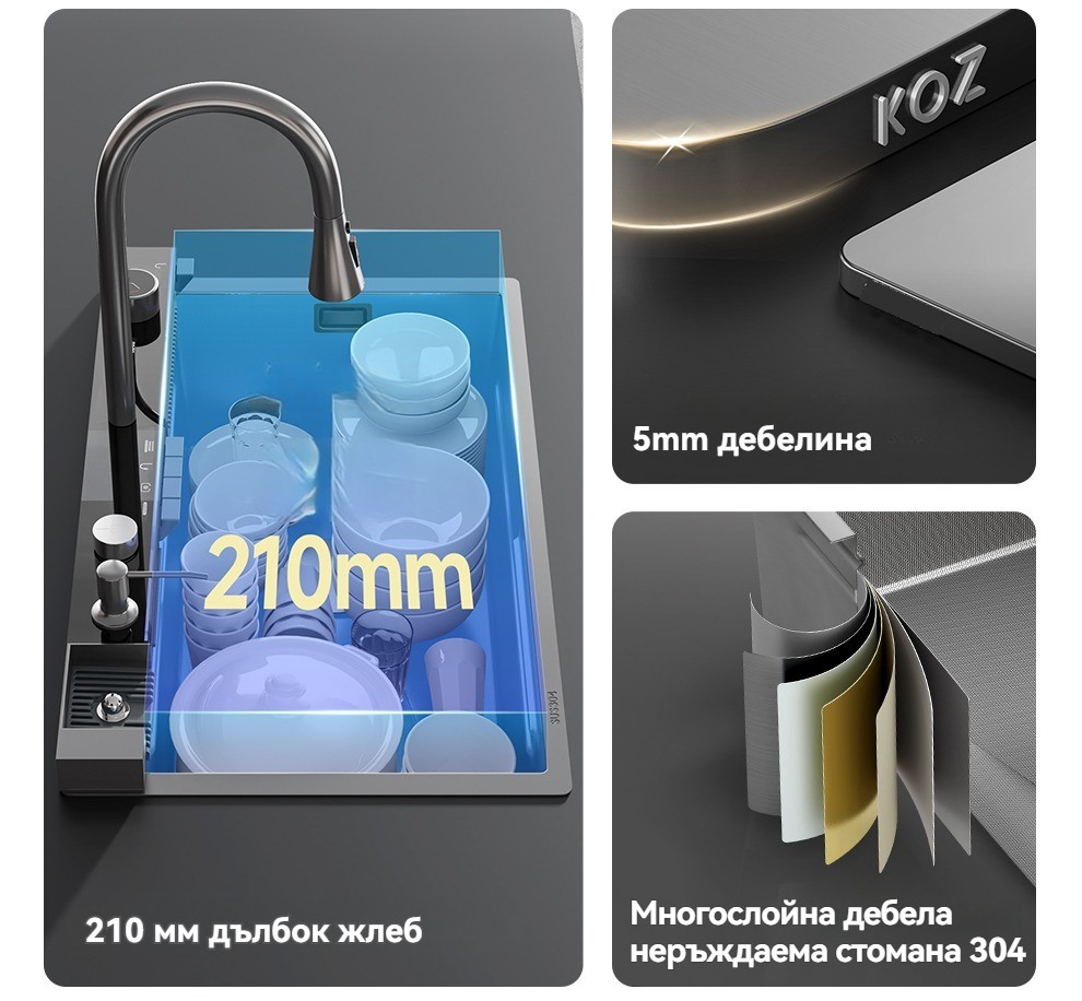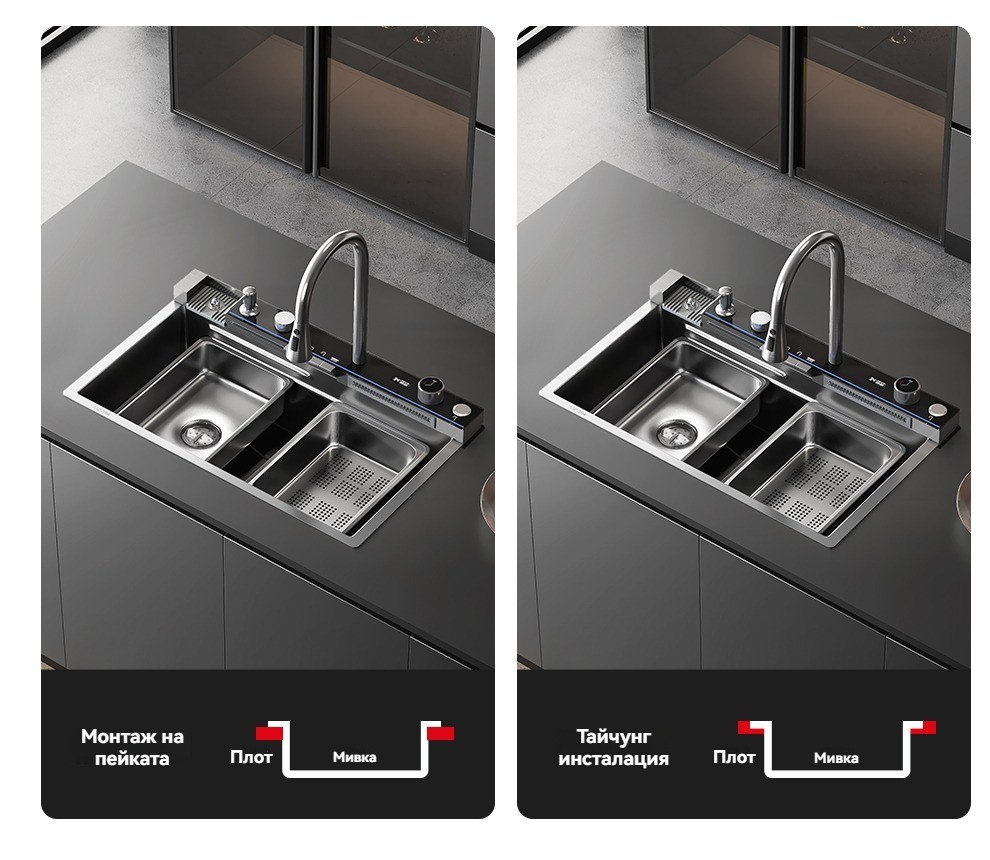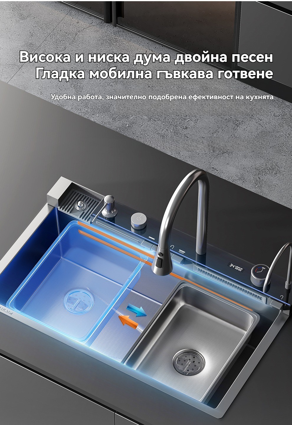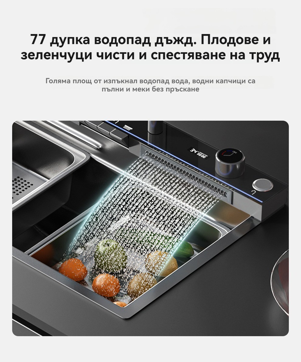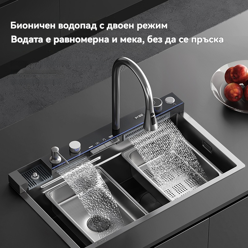 Многофункционална интелигентна кухненска мивка с дигитален дисплей за температурата на водата