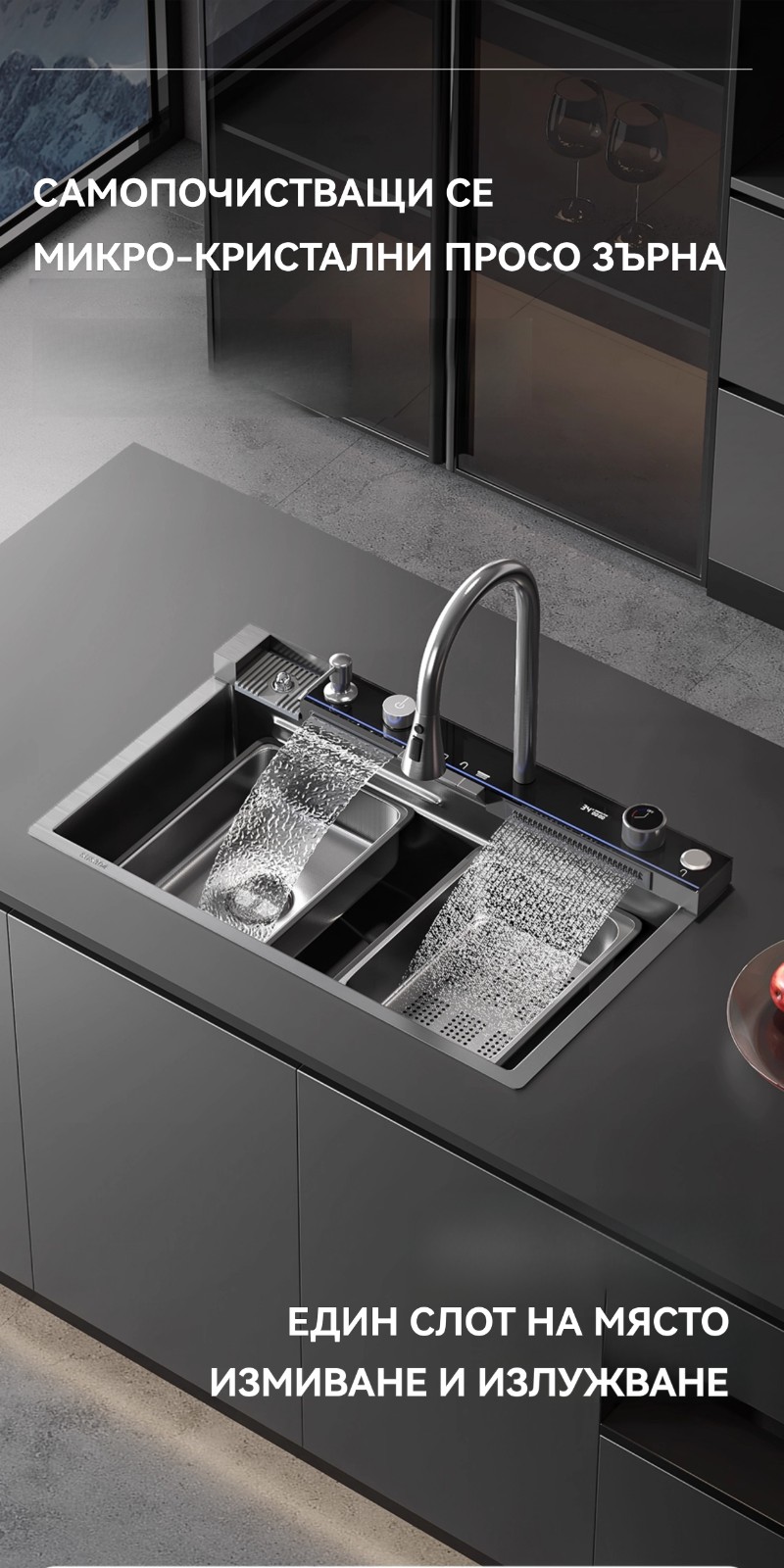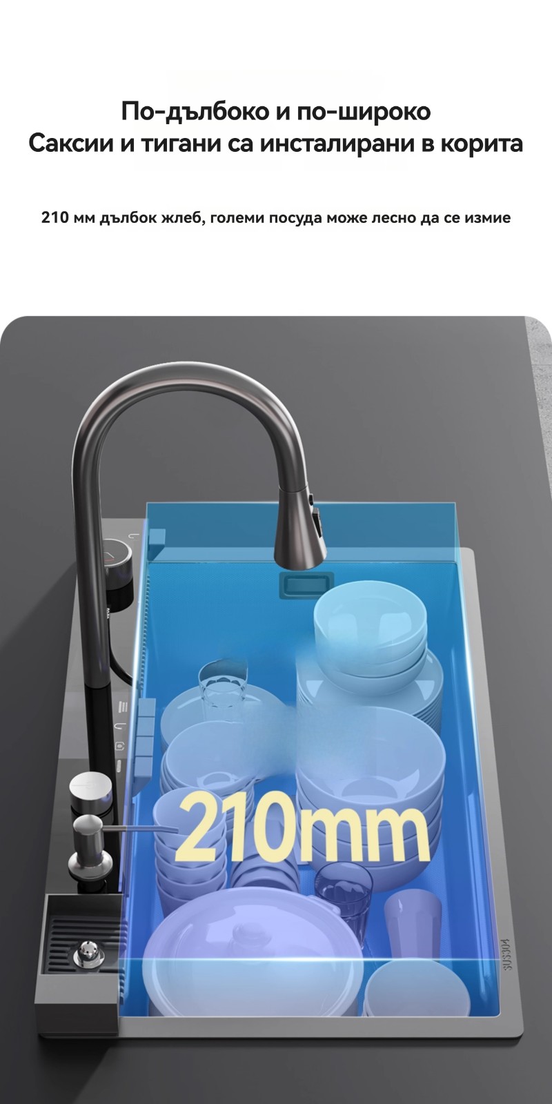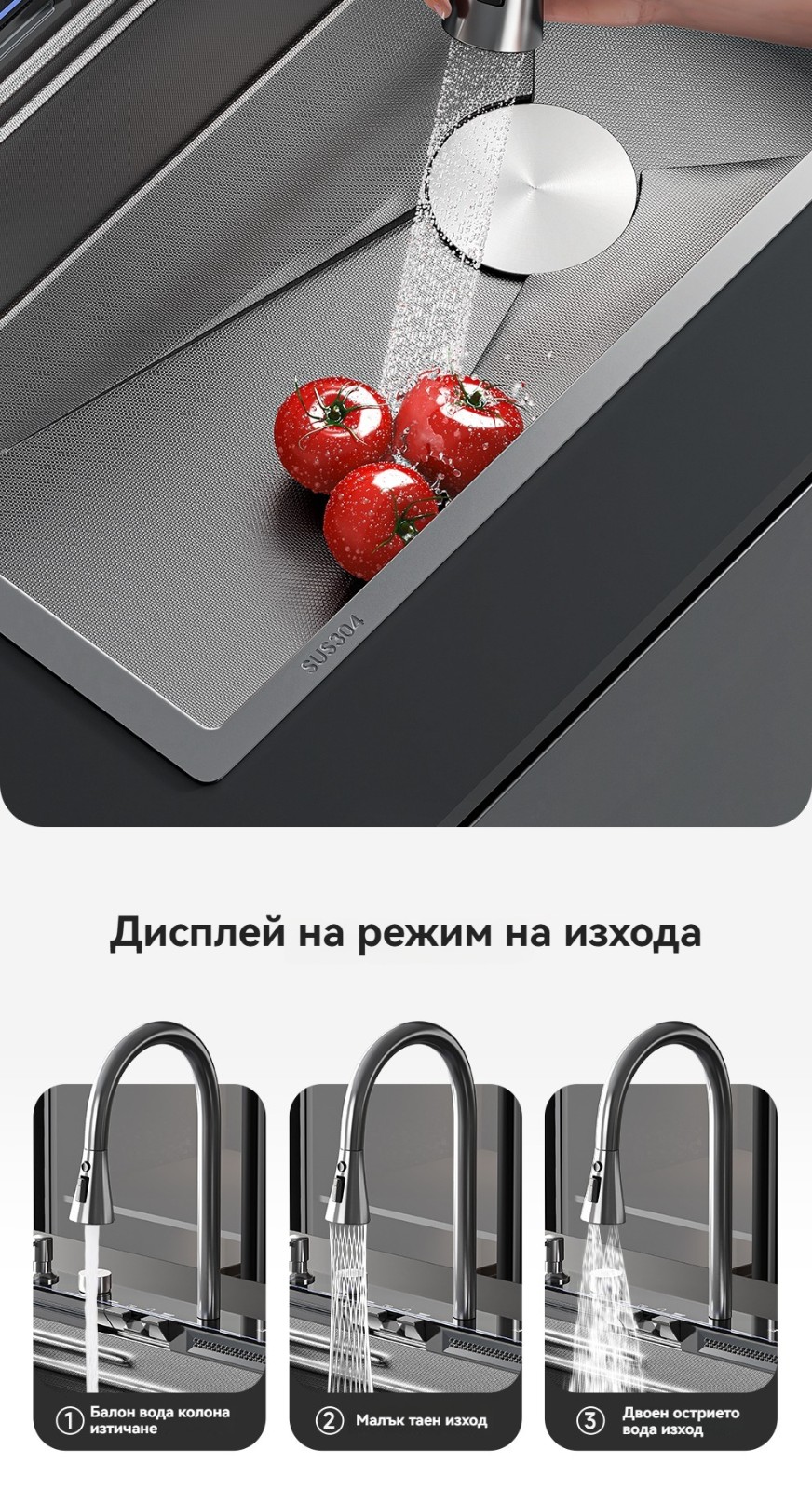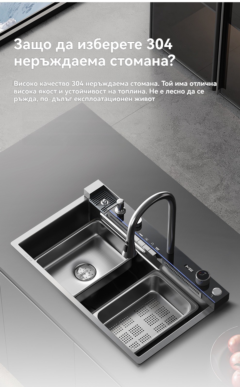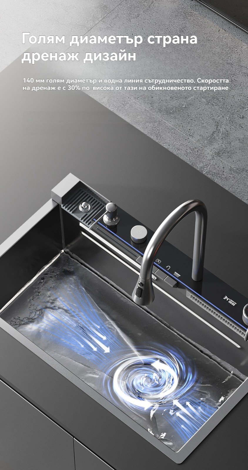 Многофункционална интелигентна кухненска мивка с дигитален дисплей за температурата на водата