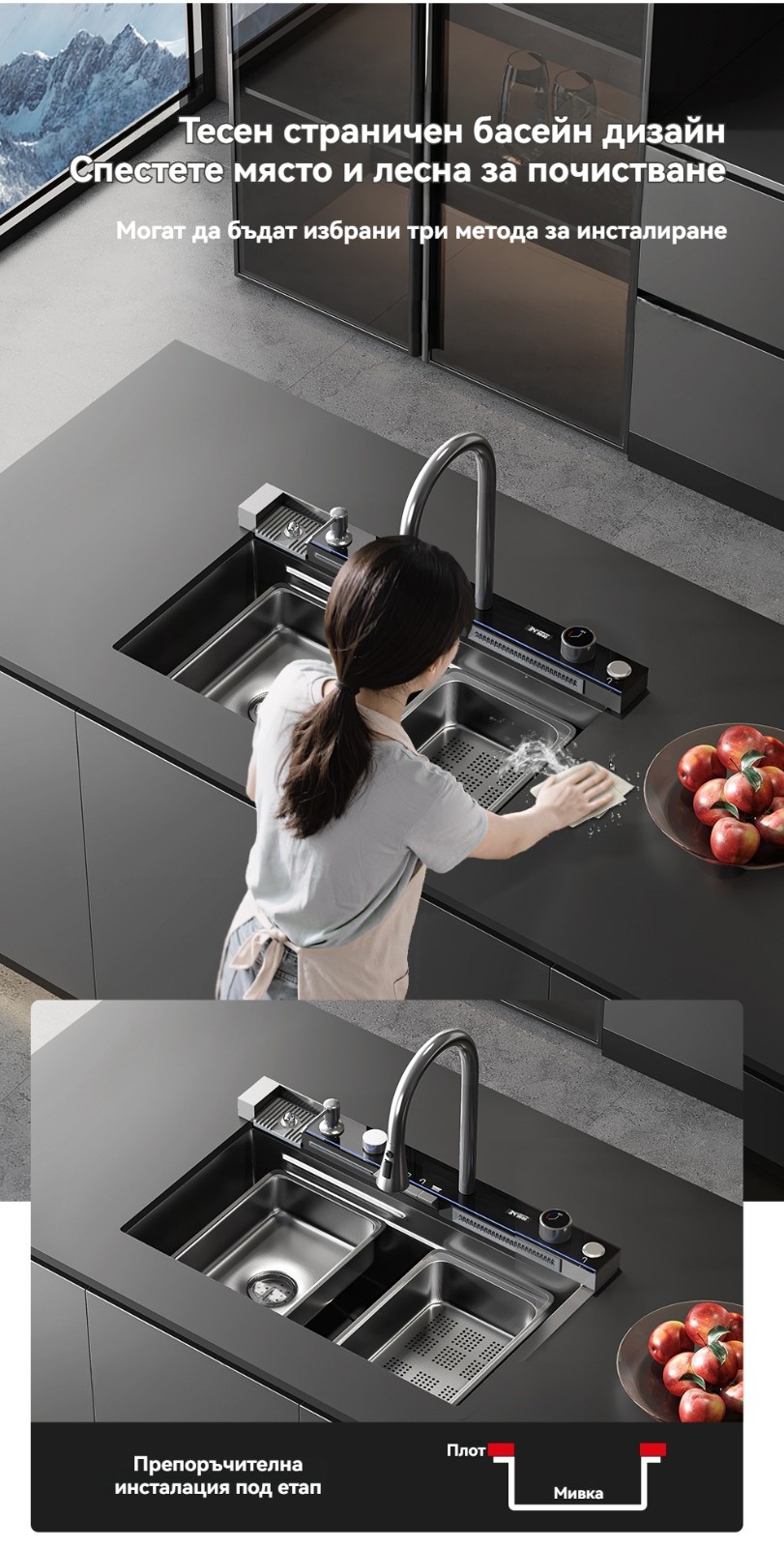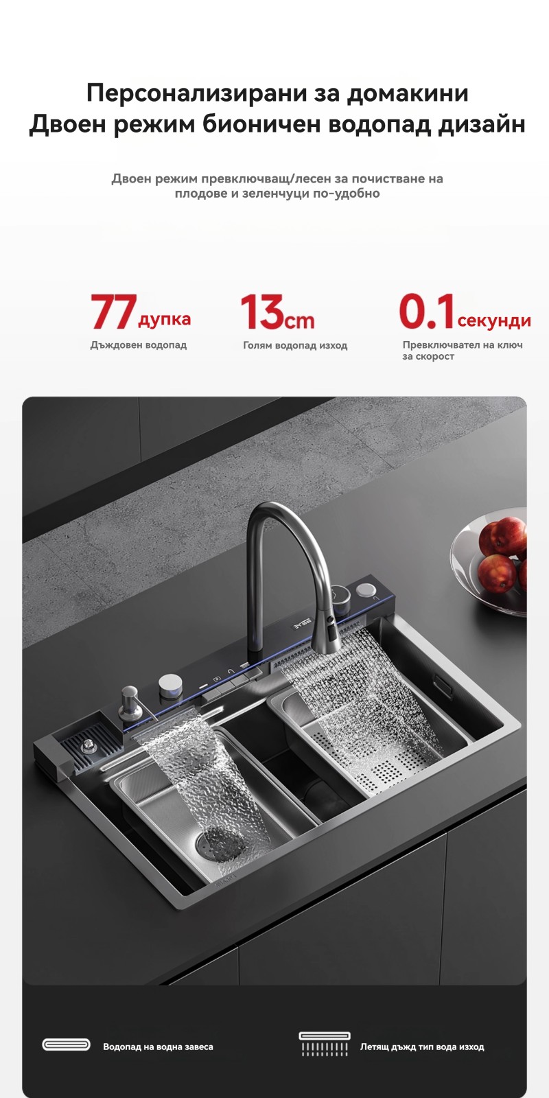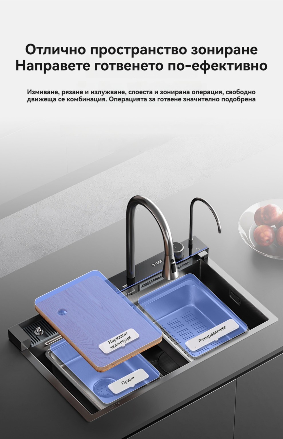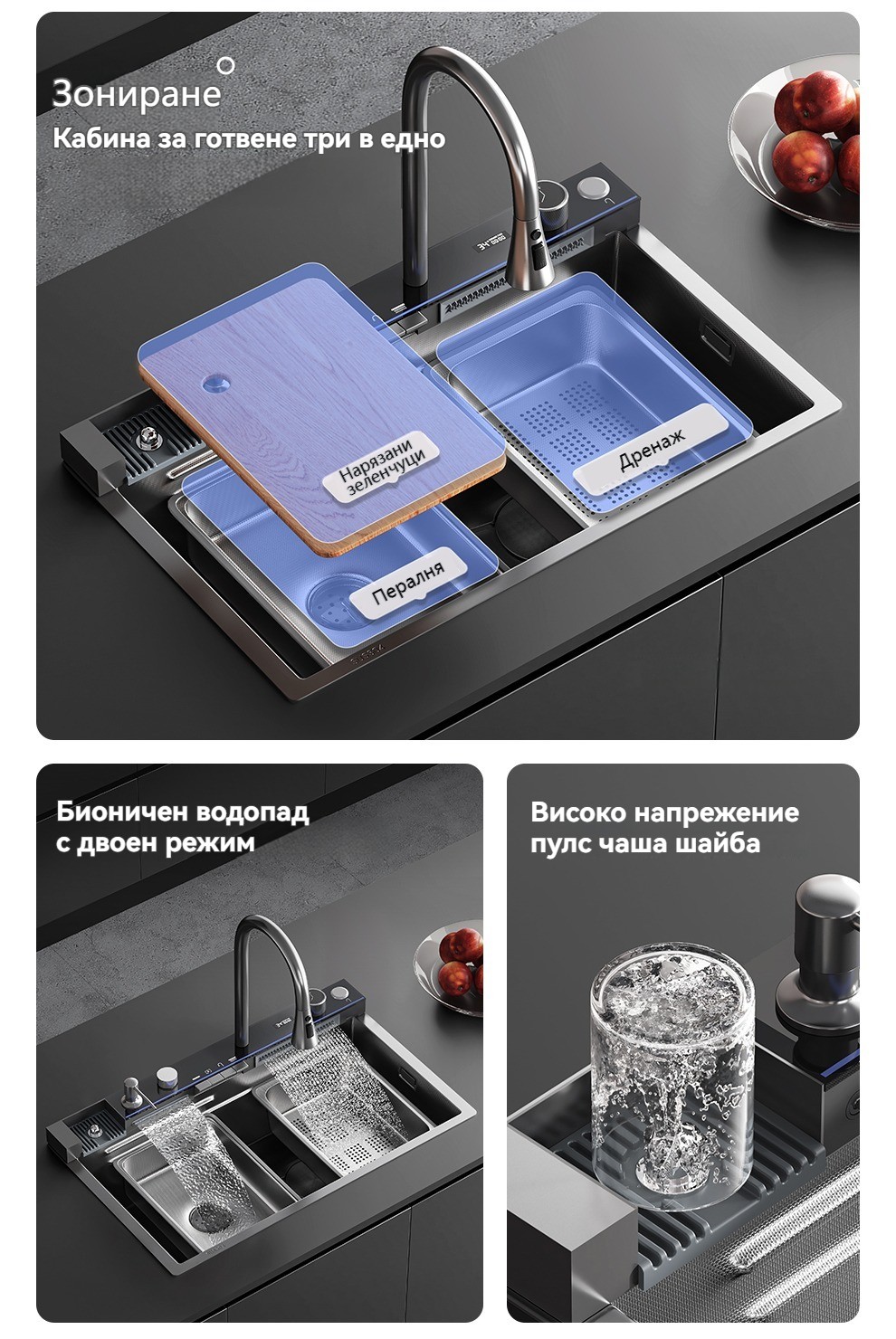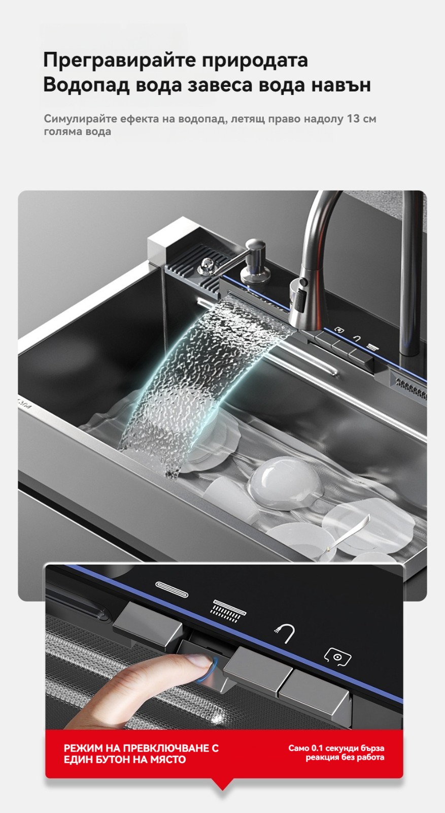 Многофункционална интелигентна кухненска мивка с дигитален дисплей за температурата на водата